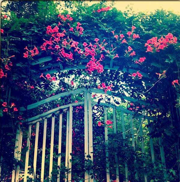 不管是仿古墻還是鐵藝墻,白墻也罷,黑柵欄墻也罷,種植一些凌霄,使其纏繞或攀援其上,可有效柔化墻體,使得籬垣更富有生機(jī),美不勝收。