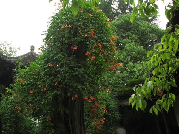 將凌霄種植于假山的縫隙處,或者再適當(dāng)控制其株型,使其驚艷而不喧賓奪主,花開(kāi)之時(shí),繁花艷彩,更覺(jué)動(dòng)人。